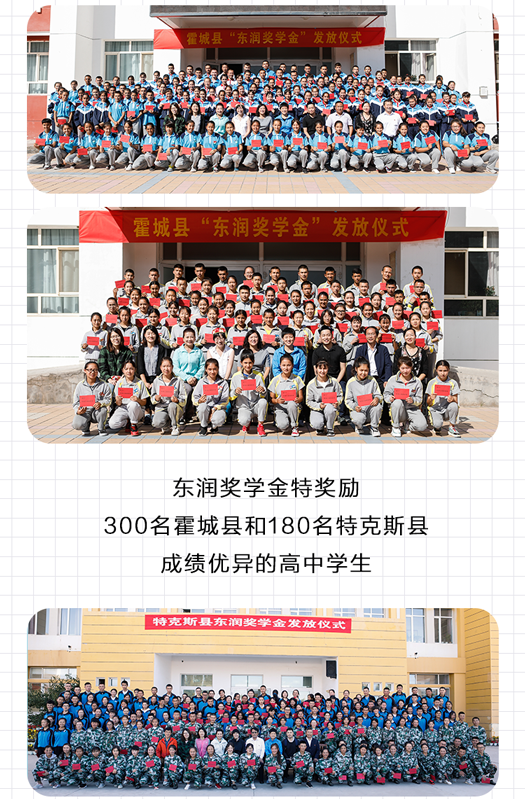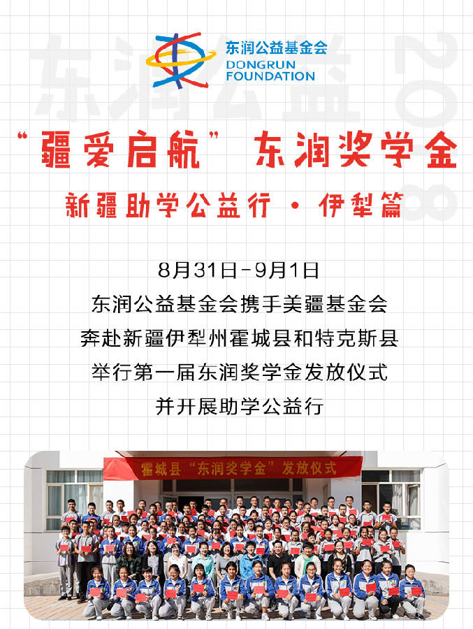 月31日-9月1日,东润公益基金会携手美疆基金会,奔赴新疆伊犁州霍城县和特克斯县,举行第一届东润奖学金发放仪式,并开展助学公益行。